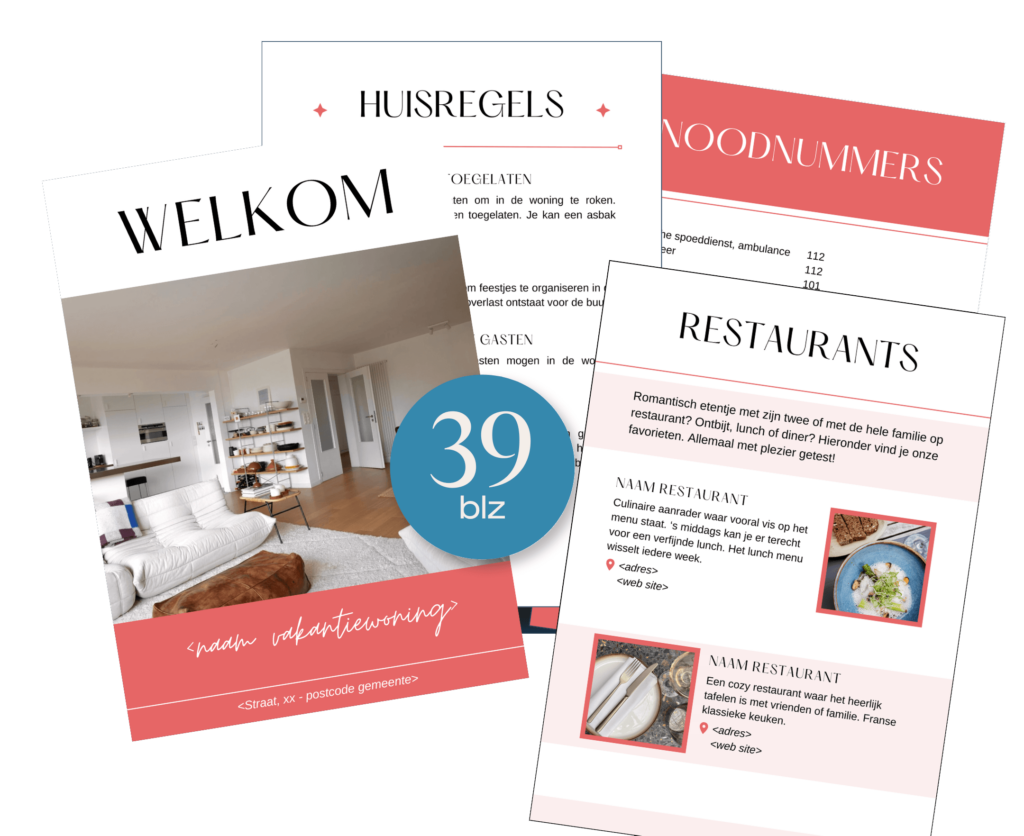 sjablonen voor infomap, aankomstgids, schoonmaak- & investarislijsten